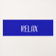 Blue background with white text. Yoga Calming Zone quote. Typography including body, mind, soul, breathe. Personalise Name in white text. Artwork of white double five poiint star inside deeper blue, black, white geometric pattern in centre. Relax is written across the backside. Original Quote Artwork Design © 2020 TamiraZDesigns.