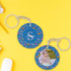 Blue Wildflower & Bumble Bee Watercolor Monogram Key Ring