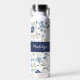 Blue Wildflower Watercolor Monogram Name Water Bottle
