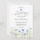 This wedding invitation features an informal tangle of wild blue meadow flowers and a beautiful flowing font. Featuring our own illustrations of cornflower, flax and milkwort with a spray of camomile daisies this is perfect for those couples who are choosing blue and possibly an outdoor cottage or garden wedding celebration. The reverse side has a single flax flower stem with an optional text box (and you can add more if click to 'customise further'). Part of our Tangled Blue Meadow Wedding collection. For a matching printable wedding sign template (where you can print all your wedding signs at home from one purchase cut and paste this link to our Zazzle sister store http://bit.ly/3kil2gD