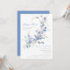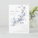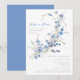 An elegant blue "baby in bloom" baby shower invitation with cascading blue watercolor wildflowers. The headline is in handwritten style font.