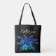 Blue wildflowers Boho Script Personalised Name Tote Bag