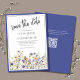 This Blue Wildflowers Floral Wedding Save the Date features beautiful wildflowers in blue, yellow and purple, modern typography and is fully customisable with your names, wedding details and a QR code for your wedding website. The formal design and wording add a touch of elegance to your wedding celebration.