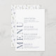 Elevate the allure of your romantic rustic wedding affair with a sophisticated and polished menu card. Embellished with intricate hand-drawn blue wildflower motifs, this beautiful design is enhanced by personalisation, showcasing the names of the bride and groom on the reverse side.