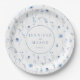 Elegant botanical watercolor navy blue wildflowers, tiny flowers with bride and groom names garden or rustic barn spring wedding paper plates.