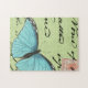 Blue-Winged Butterfly on Teal Postcard Jigsaw Puzzle