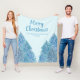 Blue Winter Forest Tree Watercolor Christmas Blanket. Watercolor drawing of a forest in winter and snow, winter trees with snow in blue colours. You can change the text or erase it.