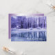 This tasteful, elegant invitation to a Christmas party presents a seasonal winter holiday landscape in shades of blue, violet, grey, white and purple. The trees are bare. Ice covers part of the water but lovely reflections of trees, clouds and sky shine through to form an abstract pattern. Snow surrounds the pond. All text can be customised to suit your needs.