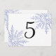 Customise these festive Blue Winter Snowflakes on White Table Numbers and create a different card for each table at your December, January or February marriage reception, bridal shower or engagement party. This elegant custom wintery table number cards feature intricate blue snowflakes adorning the corners with a white background.