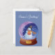 Save on postage this holiday season by sending out some postcard Christmas greetings. Perfect for spreading some holiday cheer to your mailing list. Great for businesses and independent contractors. Easily personalise the message on the back of this card with your own custom greeting. The front of the card features an illustration of a winter snowglobe with a snowman inside against a light blue background. Easily change the "Season's Greetings!" message that appears at the top of this card.