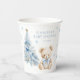 This elegant and charming Winter themed baby boy shower paper cup features a beautiful watercolor illustration of cute teddy bear wearing blue bow, sitting near festive pine tree, surrounded by blue snowflakes. Perfect for preppy and sweet Chritsmas baby boy celebration.