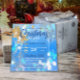 Personalised Christmas corporate party invitation design featuring snowflakes, Christmas ornaments bubbles, sparkles and lights on a blue background. The text is fully customisable. To change it use the Personalise option. For more changes, such as changes to the font, font colour or text layout, use the Edit design tool option.