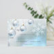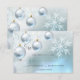 Elegant and unique winter wonderland theme scene wedding RSVP cards. Snow and snowflakes with twinkle lights, baubles in white , silver, blue background. Editable templates so you can add your own text.