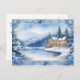 Depicting a dreamy scene in shades of blue, this watercolor postcard captures the essence of a whimsical winter night, inviting personalisation for a heartfelt message.