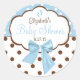 Blue With Brown Polka Dots Baby Shower Classic Round Sticker