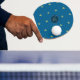 A classic houndstooth design in not-so-classic shades of cerulean blue creates a fun and updated pattern with a final accent of a metallic-like gold mixed in to create a design that will really pop. Customise the monogram on this ping pong paddle with your initial to mark it as your own.