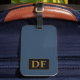 This tag features a blue design with gold initials, adding style to your travel gear. Customise it with your initials or those of a loved one, making it a meaningful travel accessory or a thoughtful gift.