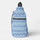 BLUE WITH WHITE LACE LOOK ROWS SLING BAG