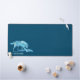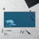 A stylised blue wolf (Canis lupus) casts a shadow as it passes through snowy terrain. Customise by adding your own text.