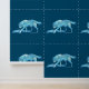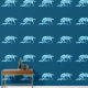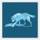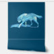 A stylised blue wolf (Canis lupus) casts a shadow as it passes through snowy terrain.