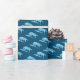 A stylised blue wolf (Canis lupus) casts a shadow as it passes through snowy terrain. You may change the background colour.