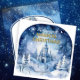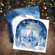 With a starry lit dark blue watercolor sky and a serene snowy background and a beautiful castle in centre, this "Wishing You a Magical Christmas" is sure to delight. The back features your unique messaging or you can use ours.