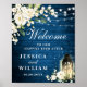 Blue Wood & Blush Roses Floral Wedding Welcome Poster