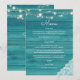Blue wood, lace, string lights wedding reception menu. Celebrate your wedding in your reception with style and cuteness with this faux wood menu. Customise with your entree options.