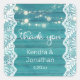 Make your invitations or thank you notes pop with this blue wood, lace, & string lights thank you sticker.