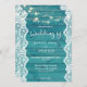 Send your guests a beautiful wedding invitation due to this blue wood & lace with string lights invitation. Great for country and backyard weddings.
