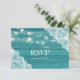 Blue Wood Lace & String Lights Wedding no Meal RSVP Card