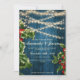 Festive Rustic Blue Wood Lights Berries Christmas wedding Invitation . This enchanting invitation captures the spirit of the holiday season while adding a touch of rustic charm. This invitation features a beautiful blue wood background that evokes a sense of warmth and cosiness.