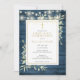 Featuring pretty string lights and delicate watercolor greenery leaves on a blue rustic wood background, and an elegant gold crucifix, this chic first holy communion invitation can be personalised with your special information. Designed by Thisisnotme©