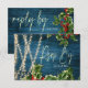 Blue Wood String Lights Christmas Wedding RSVP Card . Send out these Elegant pretty RSVP Cards along with the wedding invites to friends and family. The design has text written in classy font on beautiful rustic blue wood background with Christmas leaves and berries illustrations . Customise it by changing the Date and other details . For any further customisation , feel free to contact me at mypaperlove2021@gmail.com