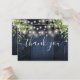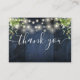 Blue Wood String Lights Greenery Wedding Thank You Place Card