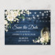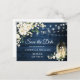 Blue Wood White Roses Rustic Wedding Save the Date Postcard.