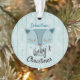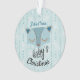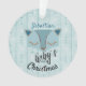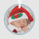 Create a special Christmas ornament keepsake for baby's first Christmas. Personalise the name on this blue striped ornament accented with a cute blue fox face and typography that read's "Baby's First Christmas". Your baby's photo image and year printed on reverse side
