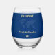 Blue World Map Passport Destination Wedding Stemless Wine Glass