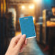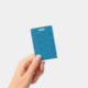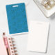Blue wrapping paper featuring a geometric pattern ID badge