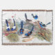Gorgeous collage of three vintage botanical fine art of darling Blue Fairy Wren Birds in their floral habitat, from Australia, by Gould, is on this Throw Blanket. Image is public domain due to expired copyright.