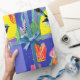 Blue Wren Tulips art on Navy, Purple and Yellow with flowers Watercolor Wrapping Paper. Designed by me from one of my original watercolor paintings. A stylish gift sure to put a smile on anyone's face.