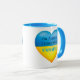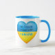 Show your support to Ukraine with this inspirational mug. The design features a heart in the traditional blue and yellow colours of Ukraine and inspirational text, "I'm Aussie I stand with Ukraine". Customise it by adding your own nationality.