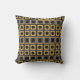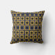 Blue Yellow Black Geometric Square Circle Pattern Throw Pillow.