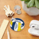 This boys' volleyball keychain with team name features a blue, yellow and white volleyball upon which you can customise the player's name and jersey number plus school team and mascot name - by katz_d_zynes | search ALL katzdzynes' blue & gold volleyball team colours gifts >>>> https://www.zazzle.com/store/katz_d_zynes/products?cg=196070957019618272