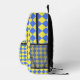 Blue Yellow Chequered Diamond Pattern Printed Backpack