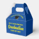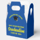 This modern royal blue and yellow custom senior graduation party favour box features your high school or college name for the class of 2025. Customise with your graduating year under the chic handwritten script and black grad cap for a great personalised graduate keepsake gift.