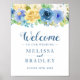 Blue Yellow Floral Botanical Garden Wedding Sign