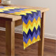 A 14” x 72” table runner featuring a cute, ombre pattern design of chevrons in blue, yellow and gold.
