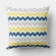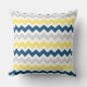 Elegant and modern dark navy blue, lemon yellow, grey and white retro chevron zigzags stripes vintage pattern decorative throw pillow. Fully customisable, add your own text or photo for a truly unique home decor item.