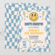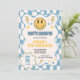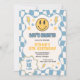 Blue Yellow Groovy Smile Chequered Retro Birthday Invitation
